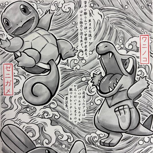 Squirtle, Totodile and Mudkip Gyotaku